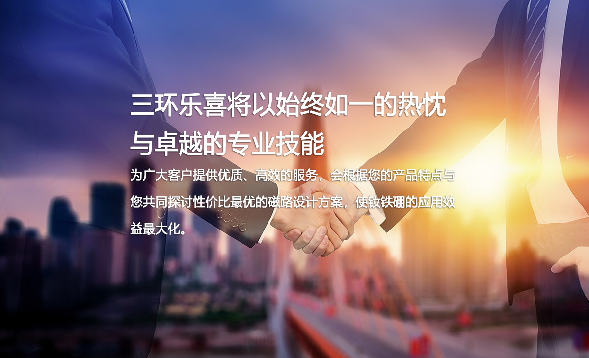 三環(huán)樂喜新材料有限公司,成立于1990年,控股股東中科三環(huán)(股票代碼:000970)為中國稀土永磁材料產業(yè)的代表企業(yè)、全球特大的釹鐵硼永磁體制造商之一。自成立以來,公司一直致力于研發(fā)、生產、銷售中、高品質燒結釹鐵硼,年生產能力超過6000噸,是中科三環(huán)的重要生產基地。